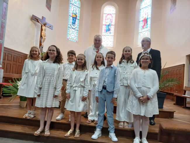 Ce jeudi de l'Ascension, 10 enfants de Briscous ont fait leur Première Communion, entourés de leurs familles, de la communauté paroissiale et de leur catéchiste. Un moment fort et émouvant dans leur parcours de foi !
